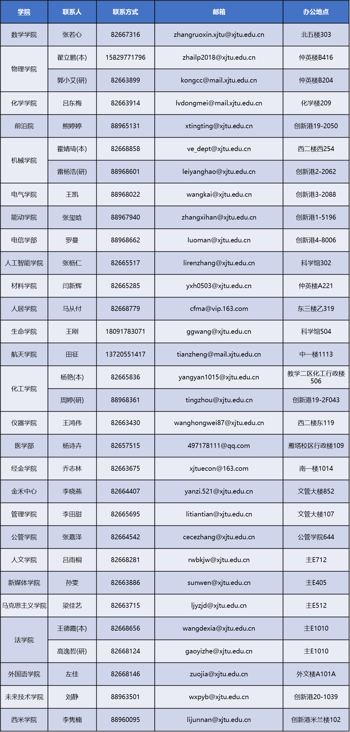 3.各学院联系方式: